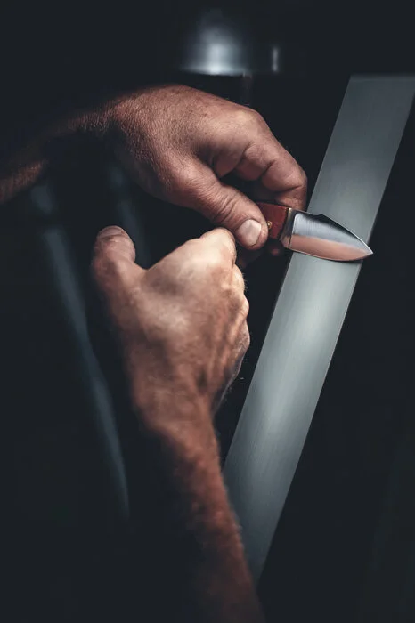 "Dans l'univers de la coutellerie, pour certains, David Baldensperger peut encore faire figure d'OVNI. À mille lieux des productions industrielles, ce coutelier-forgeron travaille en solo selon des techniques ancestrales et réinvente l'un des plus nobles ustensiles de la culture populaire et quotidienne, tout en faisant revivre l'artisanat d'art aubussonnais. Une prouesse et une audace qui mènent le coutelier à la pointe de son art..."
